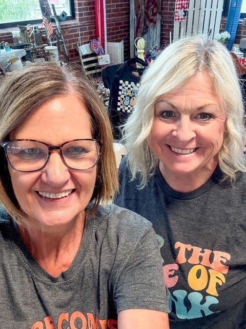 Our plan is to market home décor, both new and repurposed items, with some fun graphic shirts and jewelry as extras, because that’s us in a nutshell! Our style is a mixture of vintage, farmhouse, rustic, and a touch of boho. Most importantly, we want others to have the opportunity to share our finds and our fun.